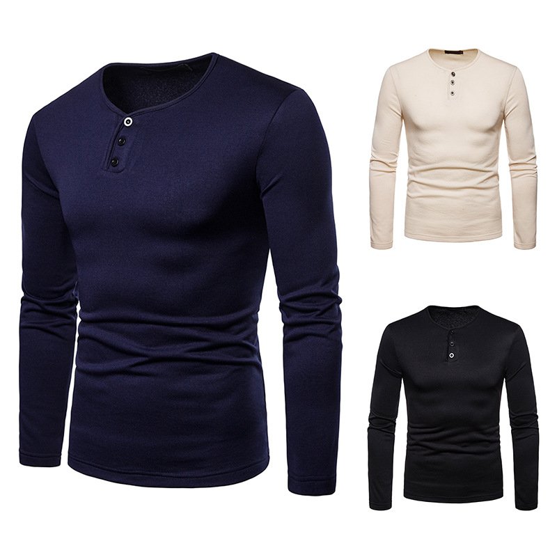 Men's plus size plus velvet warm henley collar long-sleeved T-shirt bottoming shirt Q136