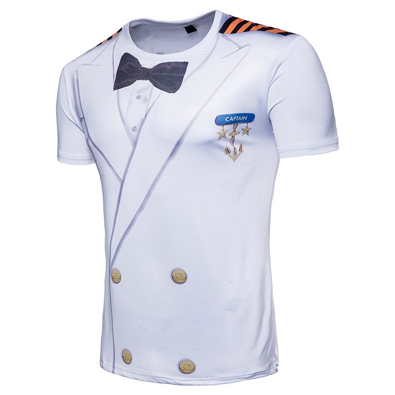 Foreign trade men's 3D short-sleeved T-shirt fake two-piece sailor suit printing air force suit printing T414