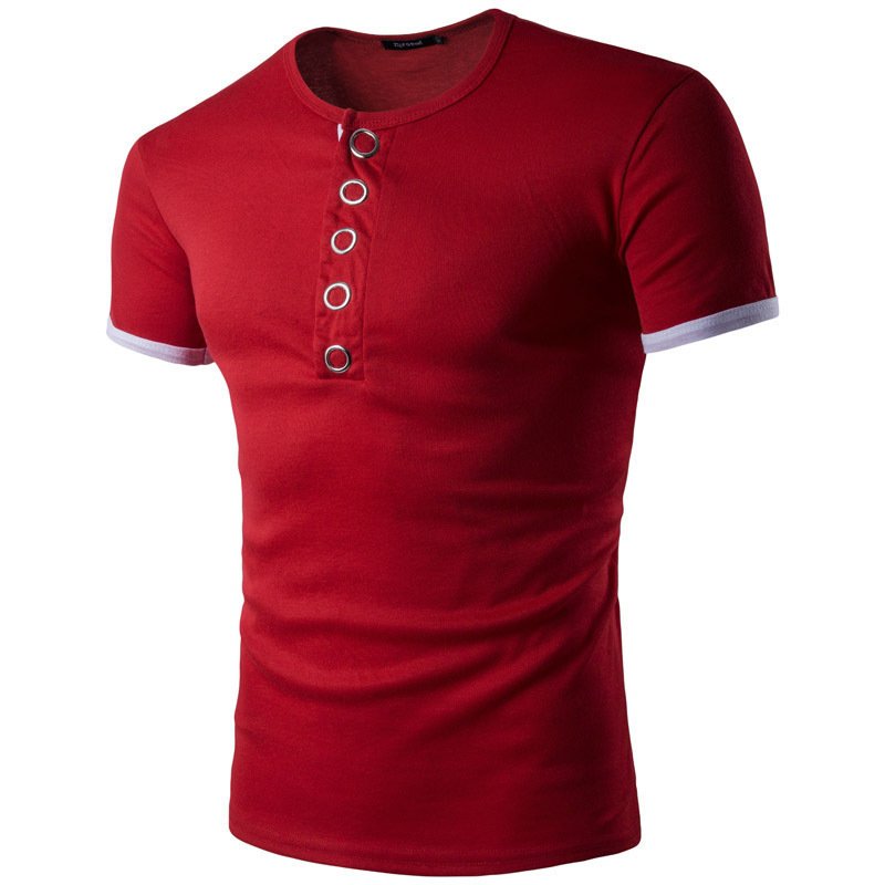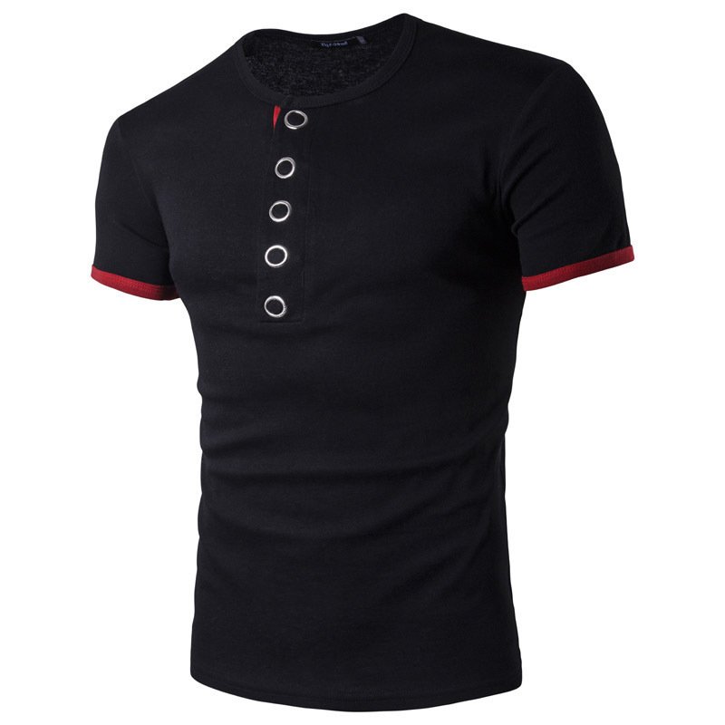 New summer men's placket knock button hit color short-sleeved bottoming T-shirt casual lapel bottoming shirt