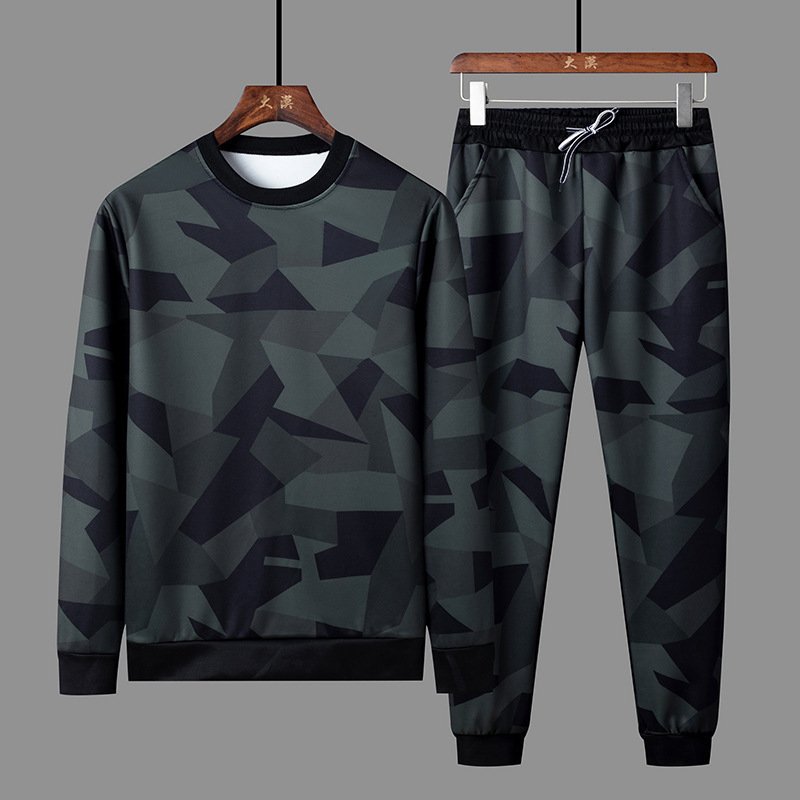 Autumn new trend men's casual sports suit sweater trend camouflage two-piece men