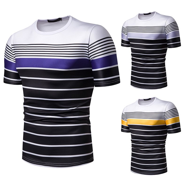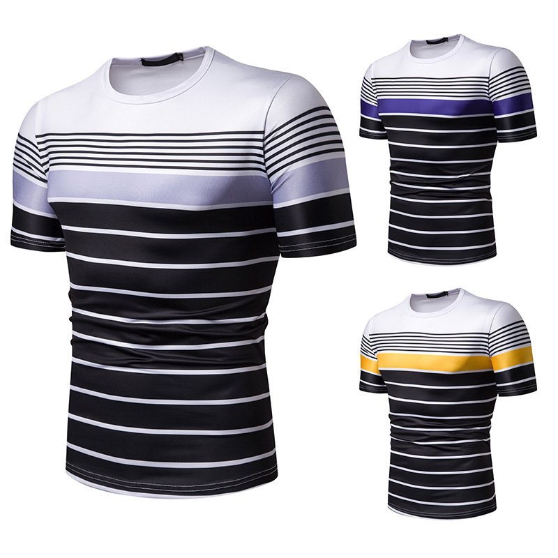 New summer men's short-sleeved T-shirt men's contrast striped slim casual t-shirt TX38