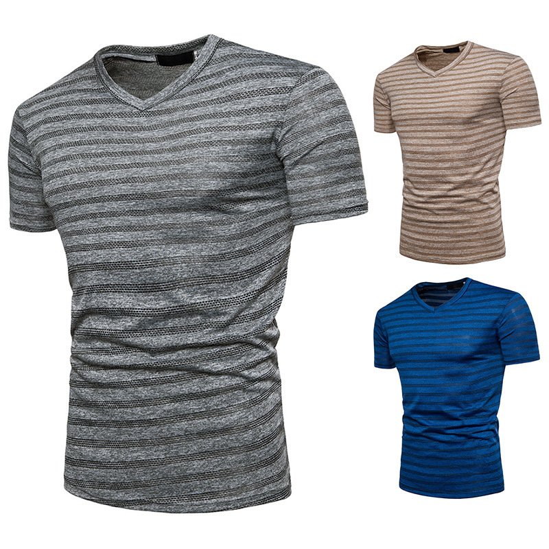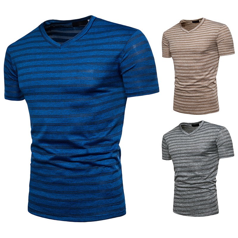 New men's fashion plus size striped short sleeve T-shirt Q04