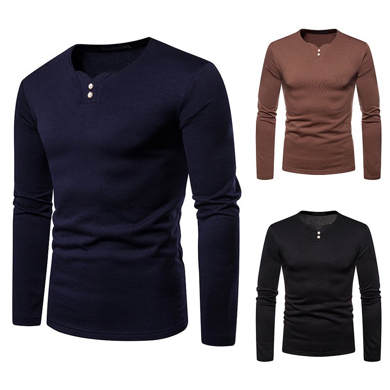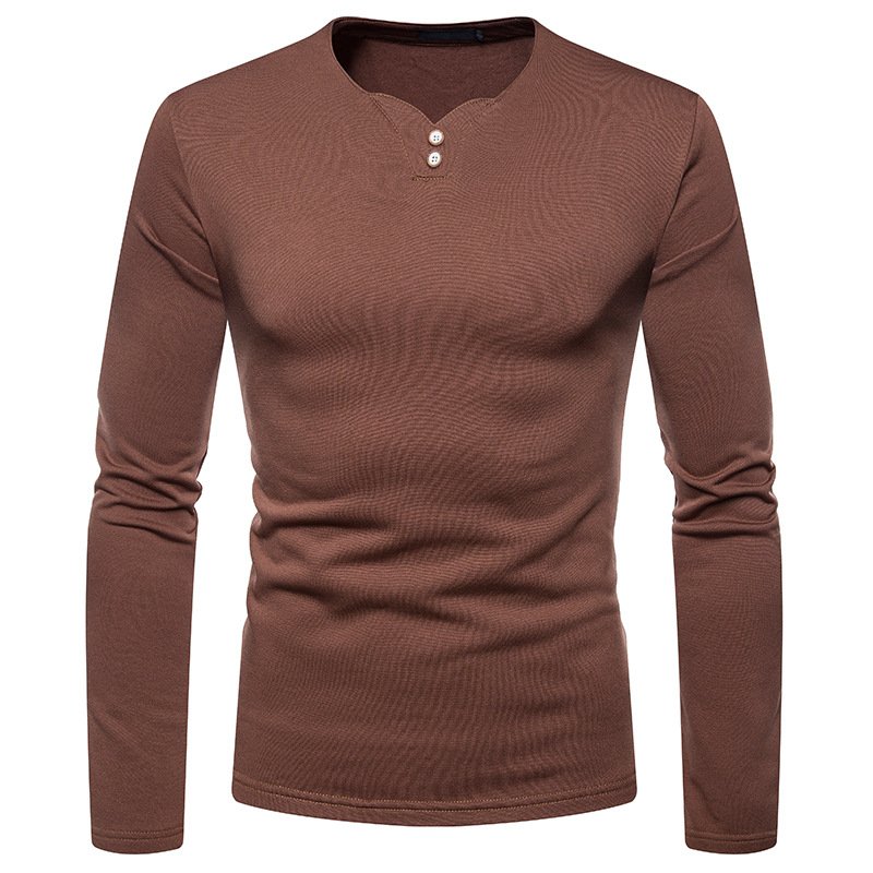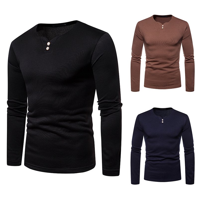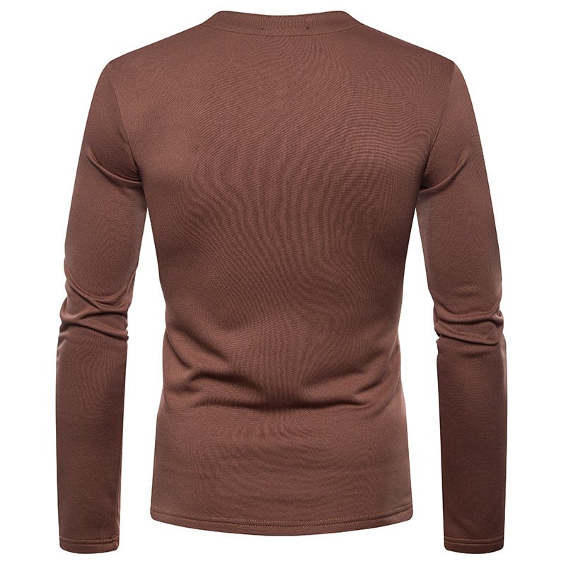 Men's plus size plus velvet warm henley collar long-sleeved T-shirt bottoming shirt Q129