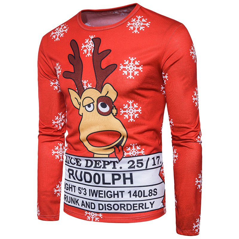 Foreign trade new style men's special letter 3D printing cute elk round neck long sleeve T-shirt CT370