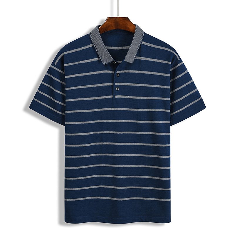 New summer men's hooded striped lapel T-shirt men's lapel short sleeve generation
