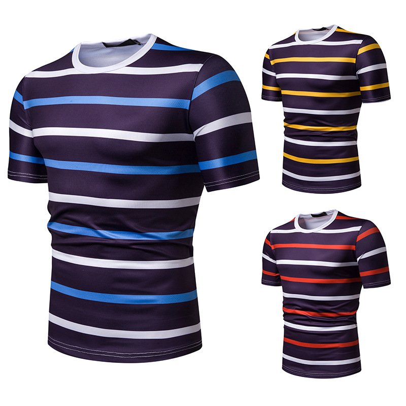 New summer men's short-sleeved T-shirt men's contrast striped slim casual t-shirt TX39