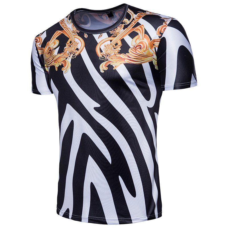 Foreign trade men's 3D printing short sleeve wind royal texture printing zebra print T-shirt T429